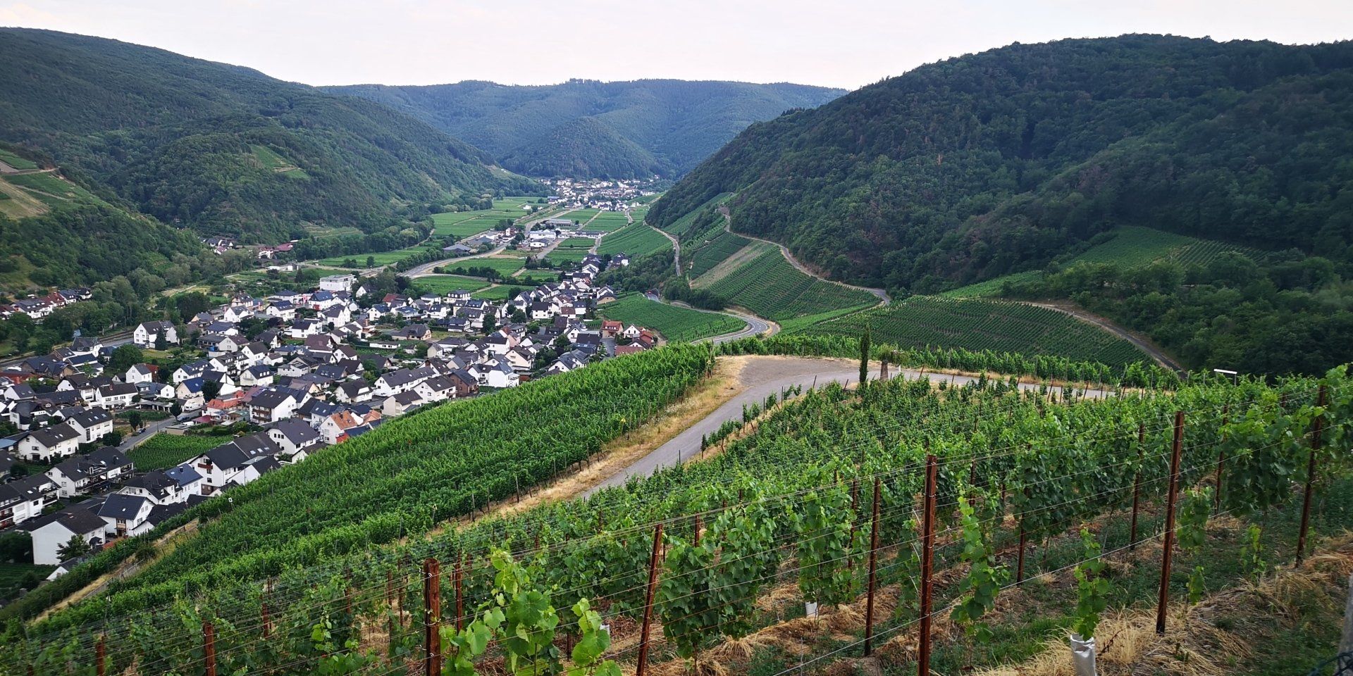Ahrtal mit uns vom Aussichtspunkt oberhalb von Dernau:
